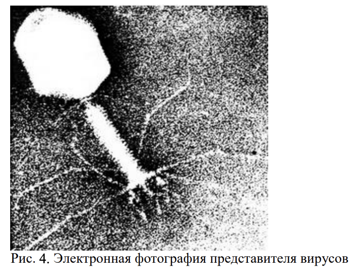 На Земле практически у каждого типа живых организмов можно обнаружить каких-либо паразитов. Среди последних особенное место занимают вирусы. На фотографии, полученной с помощью электронного микроскопа (Рис. 4), представлен типичный представитель одной из групп вирусов, довольно неоднородной, но, тем не менее, объединённой в единую систематическую категорию. Представители многих подгрупп в данной группе вирусов имеют строение вириона, схожее с представленным на микрофотографии, хотя те или иные структуры в его составе, могут быть выражены у них в разной степени или вообще отсутствовать.
