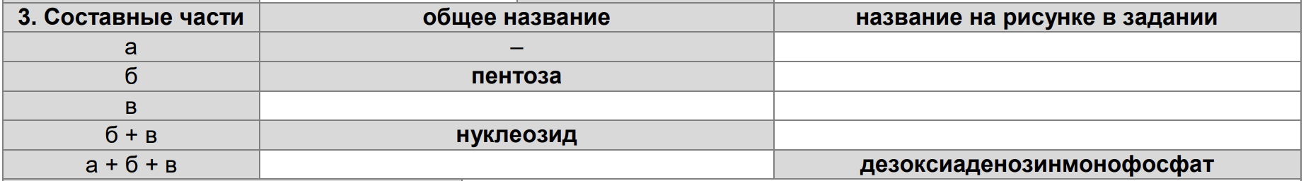 Вопрос 3. Подпишите названия составных частей молекулы, изображенной на рисунке (по два названия: для общего случая и для изображенного).