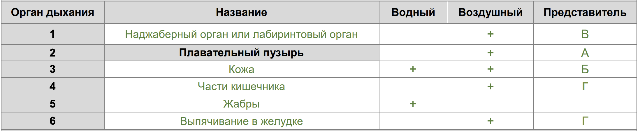 Вопрос 3. На рисунке приведены органы водного и воздушного дыхания у рыб.Дайте названия органам, соотнесите их с типом дыхания (водным или воздушным, возможно с тем и другим). Укажите какому типу относятся органы воздушного дыхания у африканского многопера Polypterus (А), илистого прыгуна Periophthalmus (Б), лабиринтовой рыбы-ползуна Anabas (В) и обыкновенного вьюна Misgumus fossils (Г)