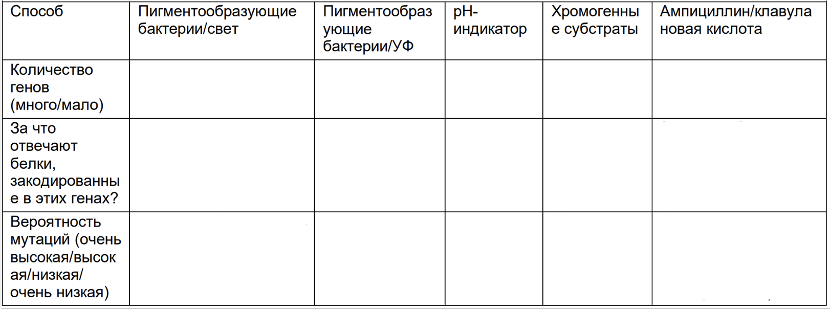 Вопрос 1. В одной из микробиологических лабораторий выделяли штаммы бактерий, образующих пигменты, из разных сред. Результаты исследований представлены в