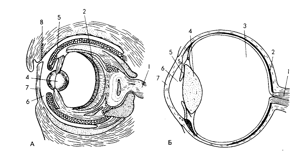 Перед вами схемы строения органов зрения многоклеточных животных. Установите типы и классы животных, которым принадлежат данные органы. Укажите механизмы аккомодации.