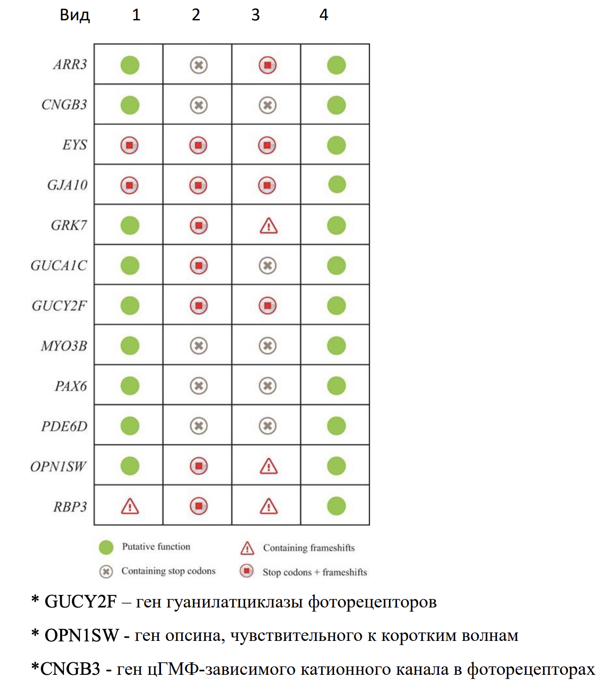 Задание 5. В таблице приведена информация о генах у различных видов Z, ответственные за некоторую общую функцию. За что в целом отвечают представленные гены? Объясните наличие псевдогенов у видов 2 и 3.