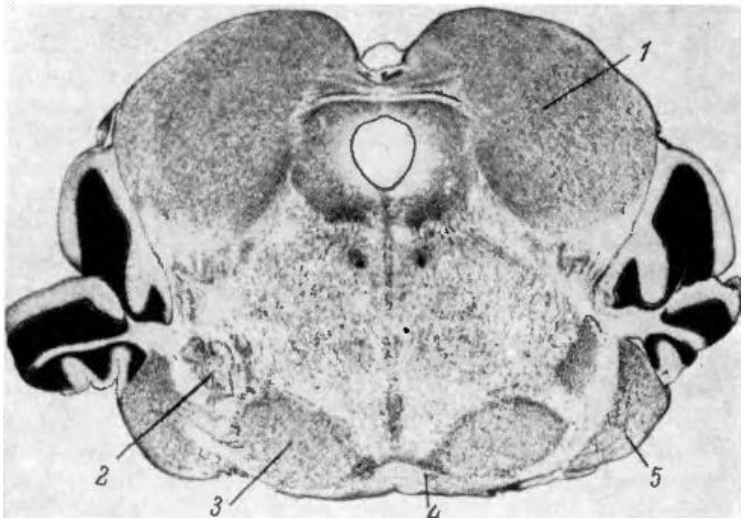 Средний мозг. Увеличение количества ассоциативных нейронов в заднем двухолмии указывает на сложную деятельность и функциональную активность этого отдела мозга в связи с использованием ультразвука.