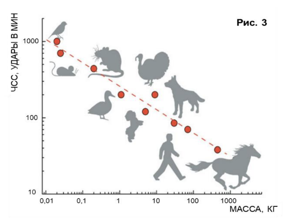 Вопрос 5. Среди птиц и млекопитающих есть еще одна интересная закономерность, связанная с размером тела - скорость сердцебиения выше у маленьких животных (рис. 3). Как это можно объяснить? (4 балла)