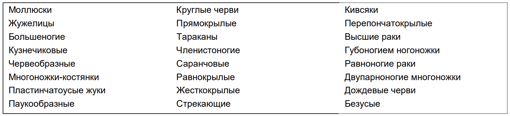 Вопрос 1. Из предложенных папой терминов выберите названия таксонов, к которым относятся животные. (15,5 баллов)