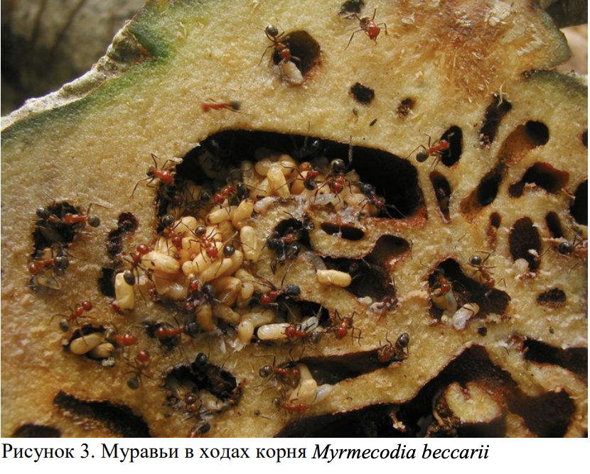 2. Продукты жизнедеятельности муравьев снабжают корни мирмекодии необходимыми веществами.