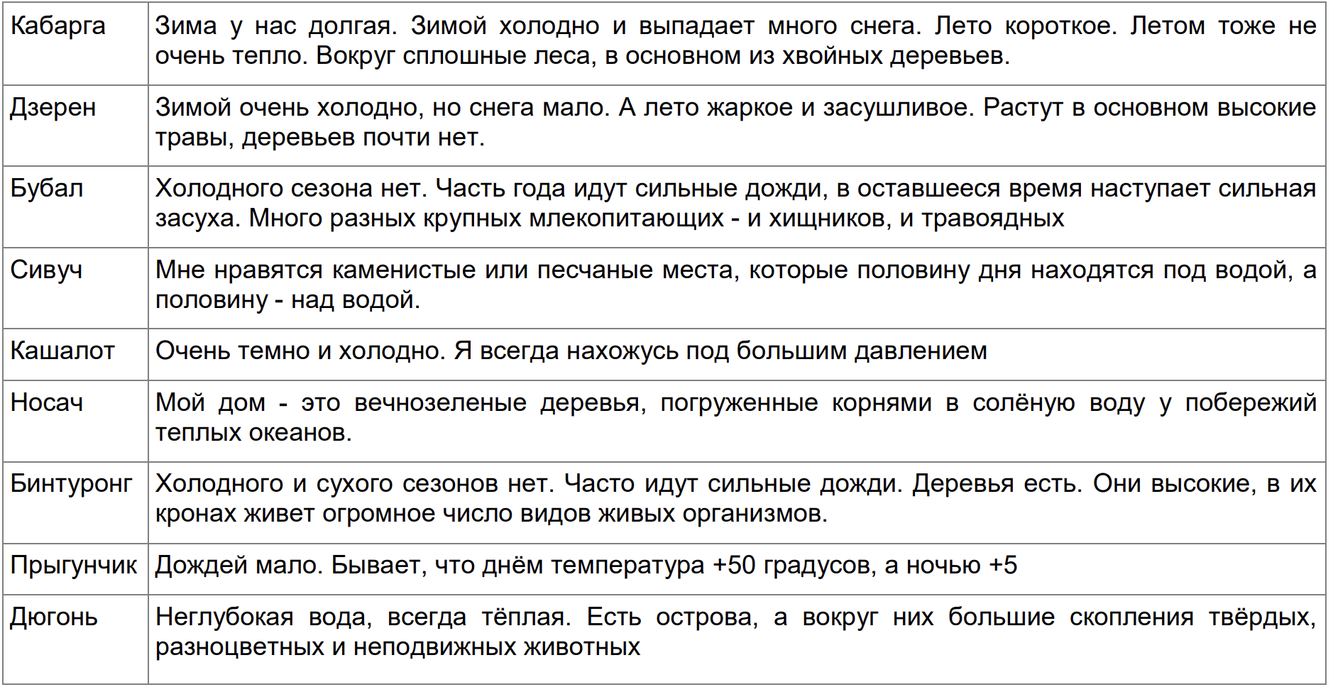 Вопрос 1. Вот что рассказали звери о своих родных климатических зонах. Сопоставьте названия зверей и их климатические зоны.
