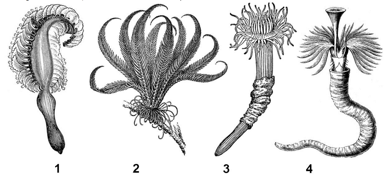 Среди изображённых на рисунках морских животных (1 – 4) к Стрекающим (Кишечнополостным) относят: