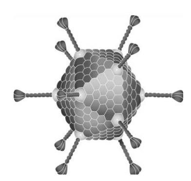 На рисунке представлено строение вирусной частицы ДНК-содержащего аденовируса.