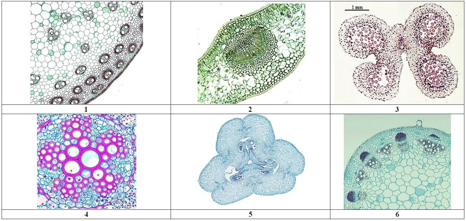 Рассмотрите иллюстративный материал. Выберите микрофотографию/и, которые могли бы соответствовать надземным органам растения F.