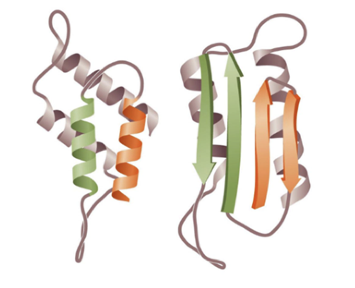 На рисунке представлены две стабильные пространственные структуры одного и того же (по первичной последовательности) белка. Выберите верное утверждение