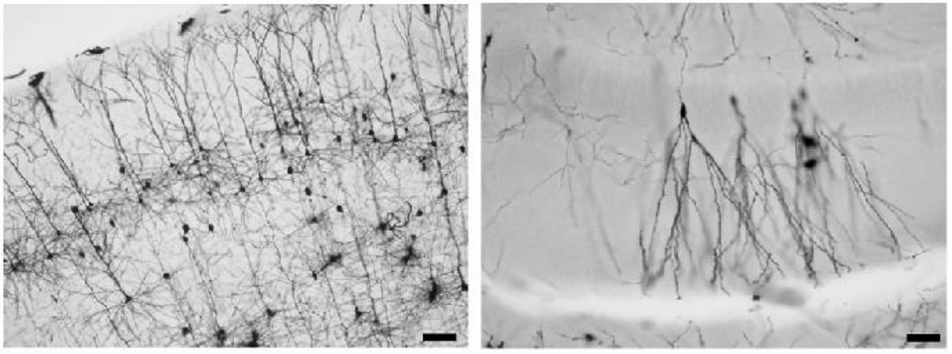 При морфологических исследованиях нервной ткани применяют разные методы окрашивания. Один из них – это метод Гольджи. При его использовании прокрашиваются лишь отдельные нейроны – меньше 1% от их общего числа. Но при этом каждый помеченный нейрон окрашивается целиком, позволяя исследователю увидеть его тело и все отростки.