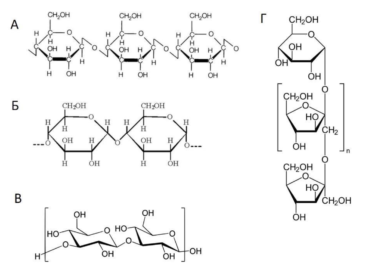 Полисахариды, содержащие глюкозу, разнообразны по структуре и функциям, они распространены среди представителей различных систематических групп организмов. Соотнесите названия полисахаридов и их химические формулы. Одной формуле могут соответствовать несколько названий полисахаридов.