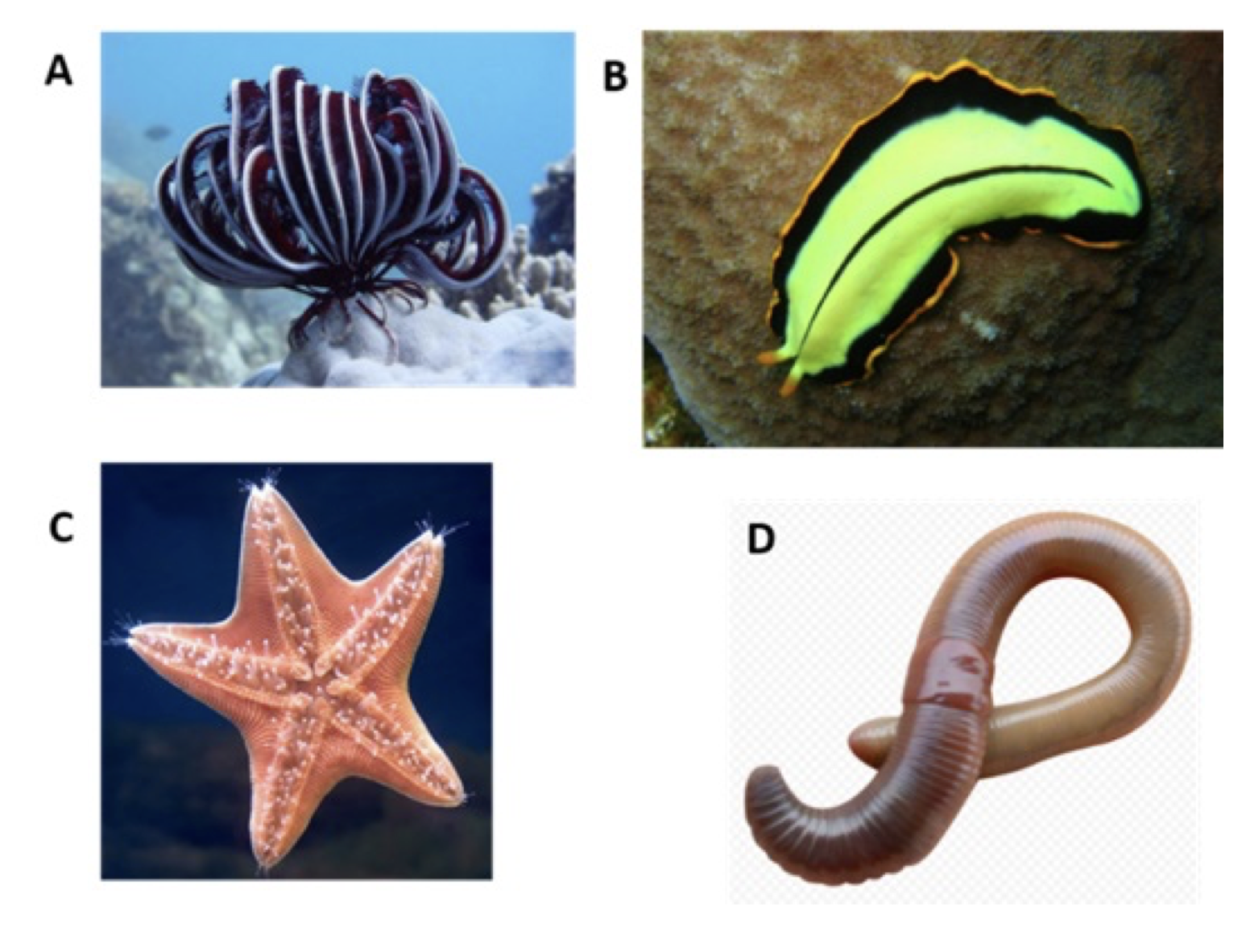 На рисунке представлены четыре представителя некоторых типов животных. Выберите верное утверждение.