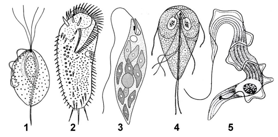 Какие из изображённых на рисунках организмов имеют стигму (светочувствительный глазок)?