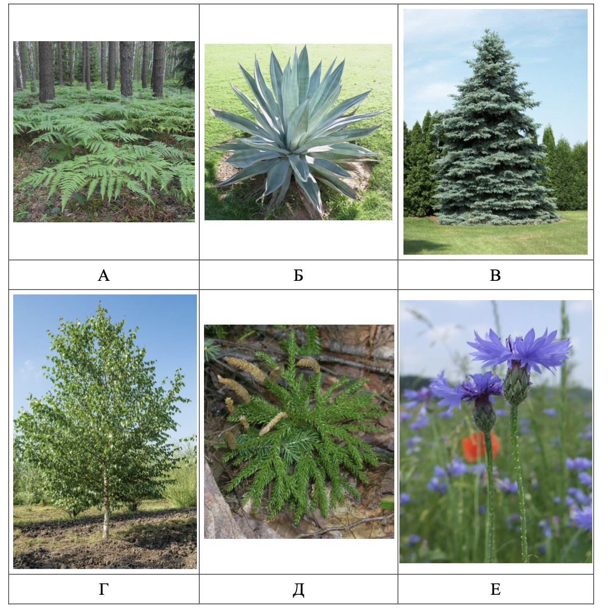 Соотнесите изображённые на фотографиях растения с экологическими группами по отношению к освещённости.
