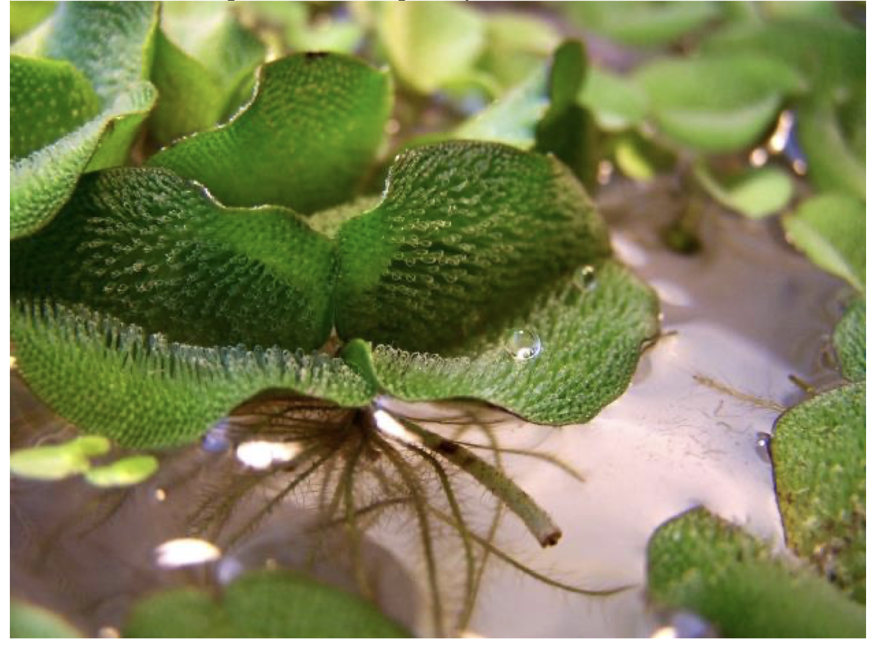 Водный папоротник сальвиния на верхней поверхности листа имеет сосочки и волоски, заметные на фото. Данная черта служит для: