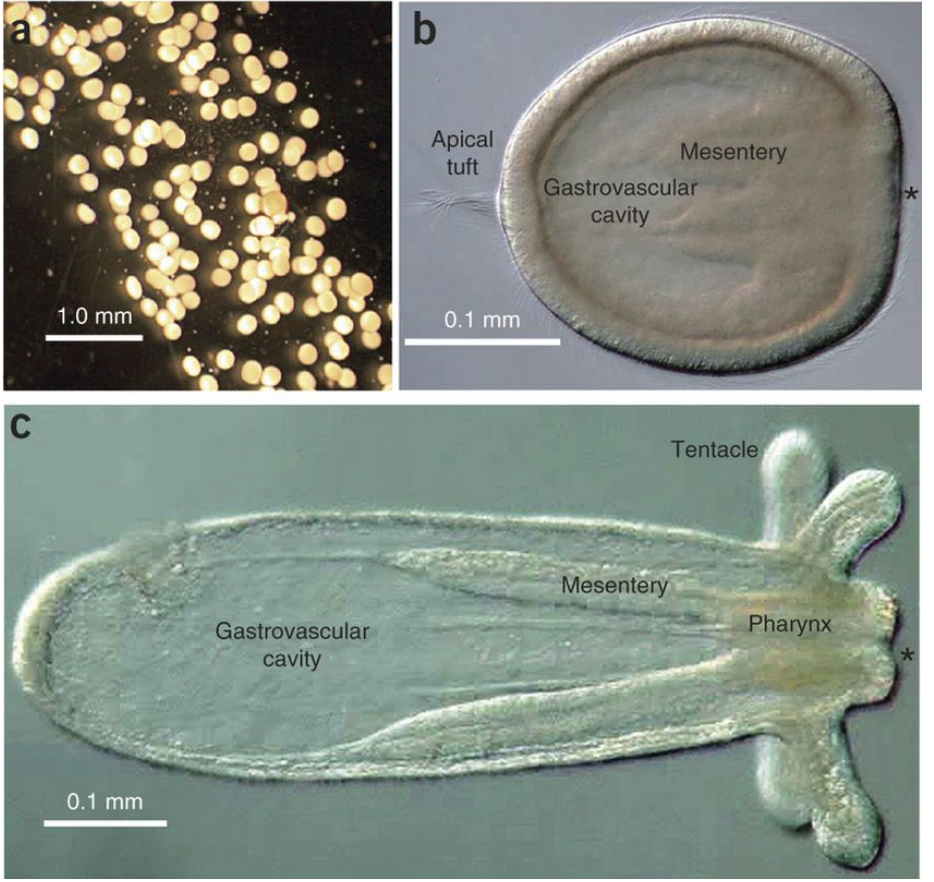 «В будущем можно будет восстанавливать ткань сердечной мышцы примерно так же, как регенерируют ткани актиний, - заявляют ученые... самые первые клетки мышечной ткани, возникшие в процессе эволюции, были аналогичны клеткам сердечной мышцы и возникли из кишечной ткани существа, подобного актинии вида Nematostella vectensis, модельным объекте для изучения молекулярной биологии»