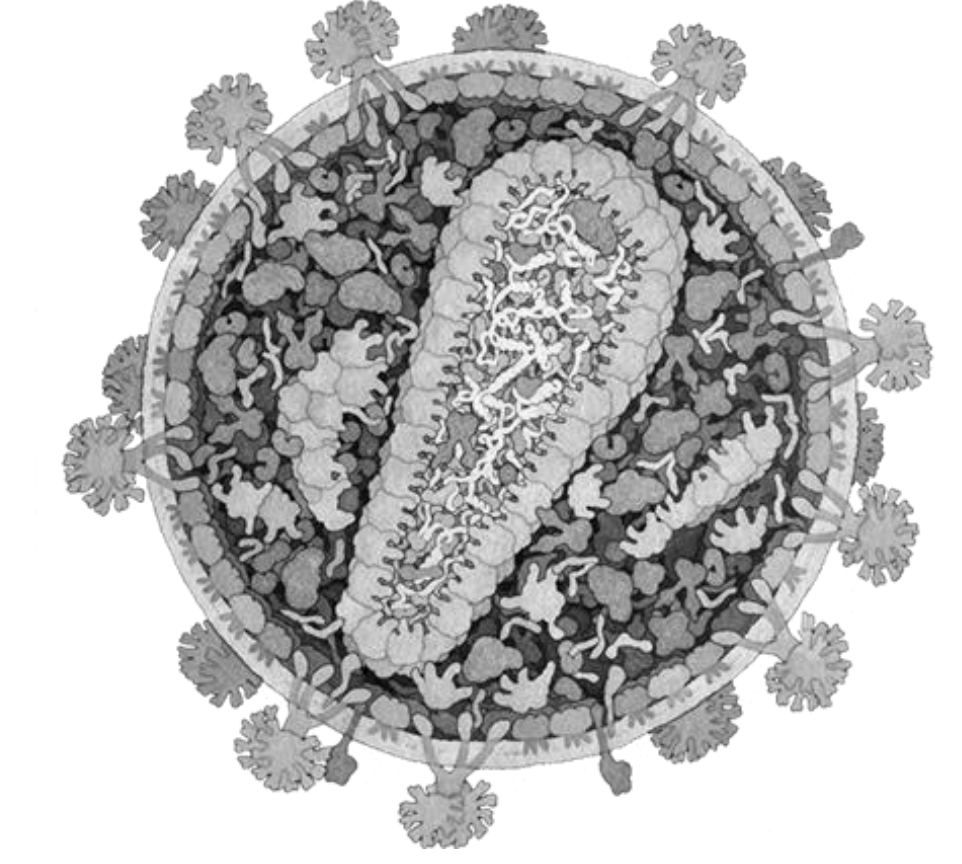 Рассмотрите изображение вириона ВИЧ (вируса иммунодефицита человека) (рисунок Дэвида Гудселла). Снаружи он покрыт: