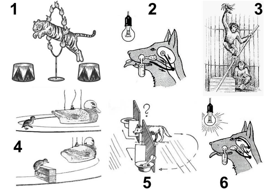 Какие виды поведения представлены на данном рисунке? Соотнесите рисунки (1-6) с видами поведения: