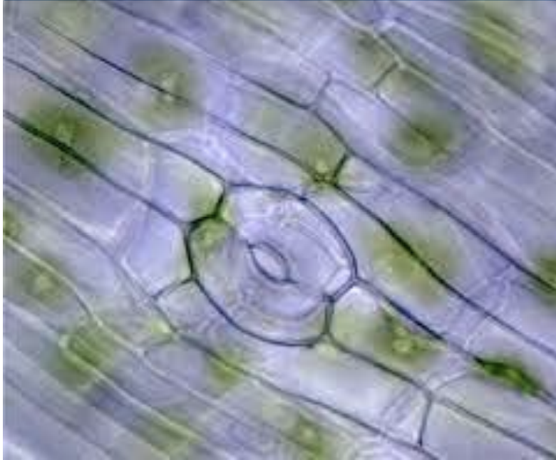 На картинке изображено устьице мохообразного растения из рода Anthoceros. Данную структуру можно обнаружить: