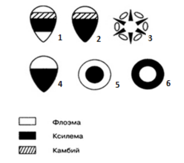 Соотнесите название типа проводящего пучка с цифрой, его обозначающей. Ответ запишите в таблицу.