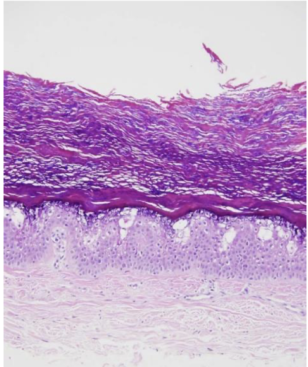 Перед вами гистологический препарат кожи больного буллёзным ихтиозом Сименса – генетическим кожным заболеванием.