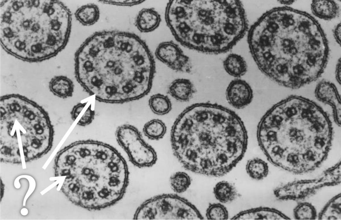 Рассмотрите микрофотографию. Какие объекты обозначены на ней вопросительным знаком?