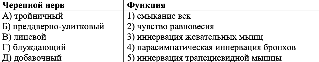 Соотнесите черепные нервы человека и их функции.