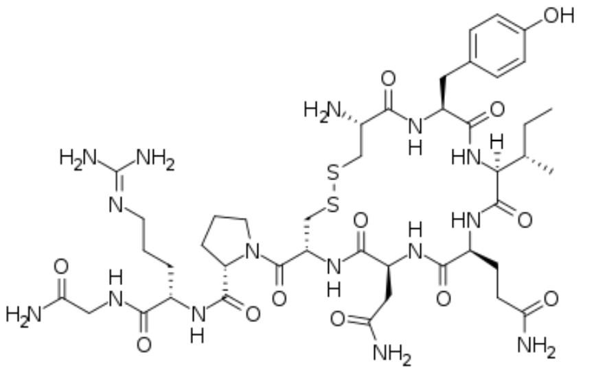 На рисунке представлена формула гипофизарного гормона миноги – вазотоцина. В результате генетической дупликации, вазотоцин дал начало двум гормонам гипофиза: вазопрессину и окситоцину. Изучите строение вазотоцина и ответьте на вопросы:
