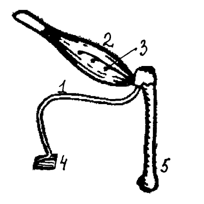 На рисунке ниже приведена схема нервно-мышечного препарата лягушки. Соотнесите структуры, изображенные на рисунке (1-5), с их функциями: