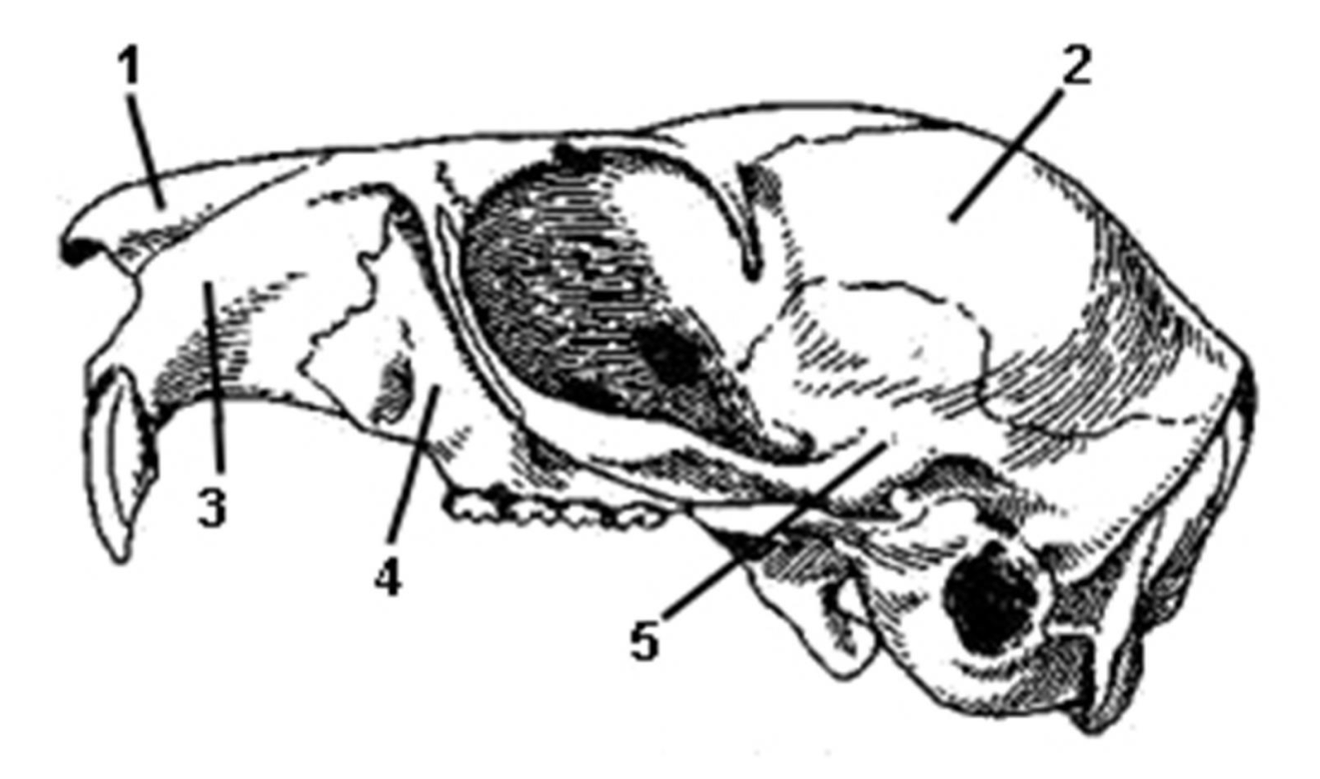 На рисунке ниже приведено изображение черепа млекопитающего.