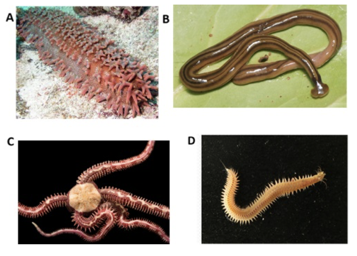 На рисунке представлены четыре представителя некоторых типов животных. Выберите верное утверждение.