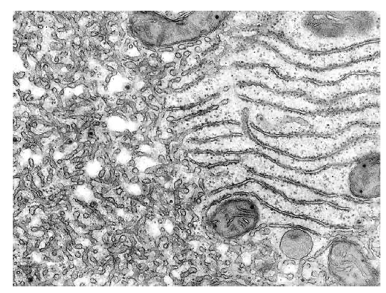 На представленной микрофотографии фрагмента клетки НЕЛЬЗЯ увидеть: