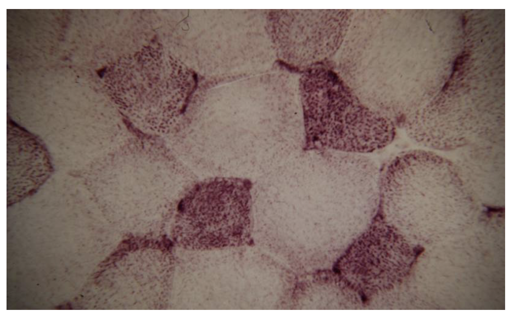 Цитохимическое окрашивание по Гомори позволяет оценить активность сукцинатдегидрогеназы (митохондриального фермента) в тканях и клетках человека. На микрофотографии представлено окрашивание скелетной мускулатуры по Гомори. Чем темнее окрашивание, тем активнее сукцинатдегидрогеназа. В мышечных единицах с наиболее активной сукцинатдегидрогеназой также весьма активно протекает: