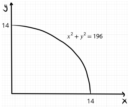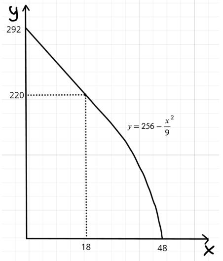 Для производства товаров x и y фирма использует труд (L) и капитал (K). Изначальные запасы этих ресурсов равны L=36, \ K=64. Для каждого пункта, используя приведенные в нём производственные функции товаров, постройте КПВ фирмы в координатах (x; \ y) :