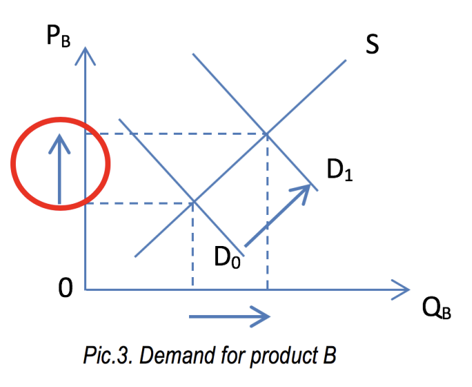 Growing demand for product A will increase the pressure on the price of the product A, thus causing consumers reconsider the choice of product A and switching to substitute product B (see Pic.2)