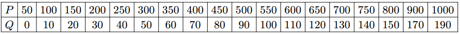 Q^{s}=\begin{cases} 2P-100, & \text{если } P\ge 50,\\[2pt] 0, & \text{если } P<50. \end{cases}