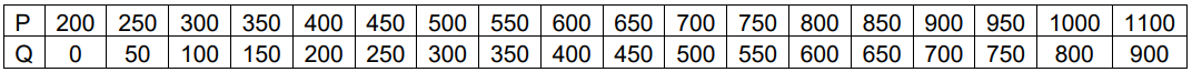 Q^{s}=\begin{cases} 2P-100, & \text{при } 25\le P\le 200,\\[2pt] 3P-300, & \text{при } P\ge 200. \end{cases}