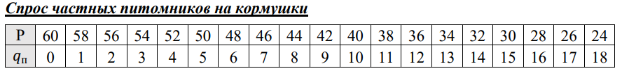 q_п – количество кормушек, которое готовы купить частные питомники, штук