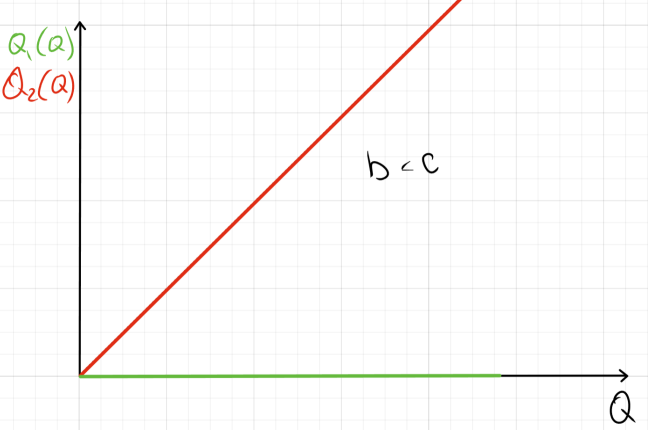 Среди второго и третьего никогда не используем завод с более высоким коэффициентом. Например, для b<c сначала Q_1=Q, \ Q_2=0, потом MC_1=MC_2 :