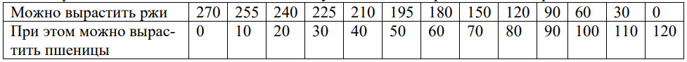 ( 10 баллов). На обеих фермах количество выращенной ржи должно быть в 3 раза больше, чем количество пшеницы. Заметим, что при увеличении производства пшеницы, производство ржи будет снижаться.