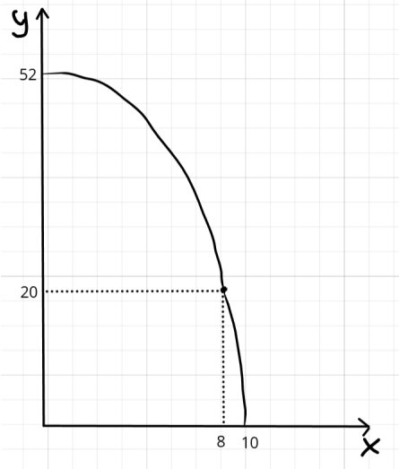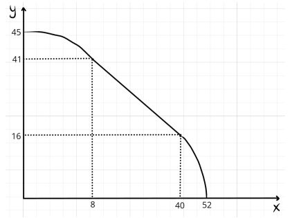 y = \begin{cases} 52 - \frac{x^2}{2} & x \leq 8 \\ 36 - (x - 4)^2 x & 8 < x \end{cases}