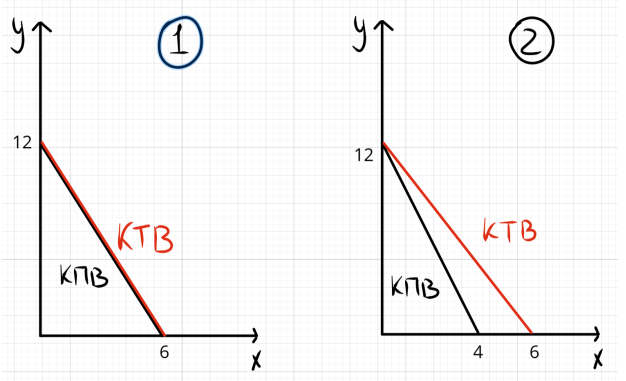 Для каждого из следующих пунктов найдите КТВ каждой страны при условии, что страны торгуют по обменному курсу P_x/P_y=2 только друг с другом.