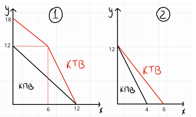 а) y_1=12-2x_1, \ y_2=12-3x_2