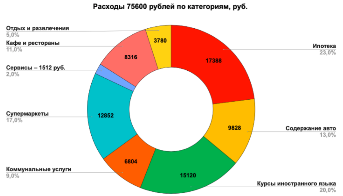 Чтобы сделать выбор, Руслан решил узнать, а на что он тратит больше всего денег. Для этого в личном кабинете мобильного банка он нашел раздел с аналитикой своих расходов по карте за предыдущий месяц. Ознакомьтесь с диаграммой и ответьте на вопросы.