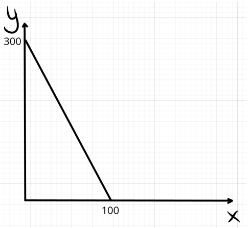Известно, что издержки производства каждого товара в стране постоянны, и изначально КПВ её имела вид y=100-2x. В результате научно-технического прорыва производительность товара x выросла в два раза, а товара y – в три раза.