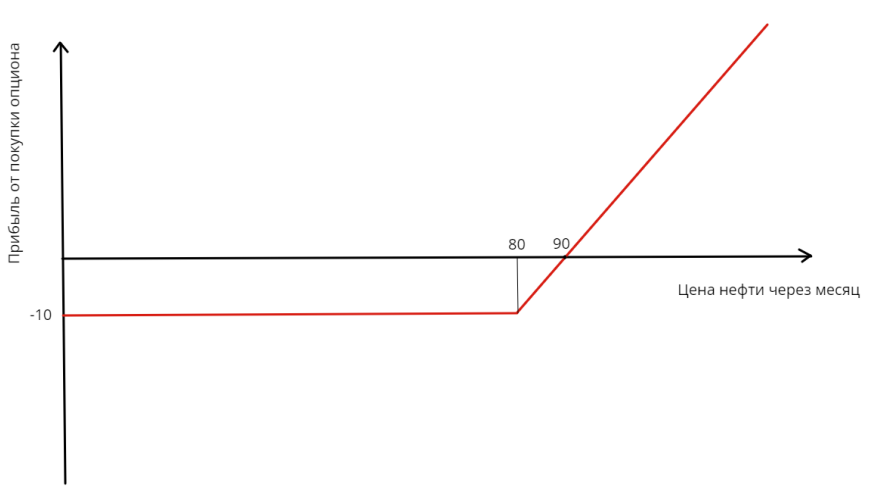 Колл-опцион с ценой исполнения 80 и рыночной стоимостью 10.