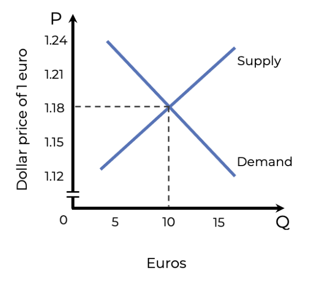 The following diagram illustrates the exchange market for euros. Choose the correct statement.