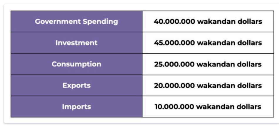 The official currency is the Wakandan Dollar and 40 million such dollars are currently in circulation. The matrix includes macroeconomic data for 2023.